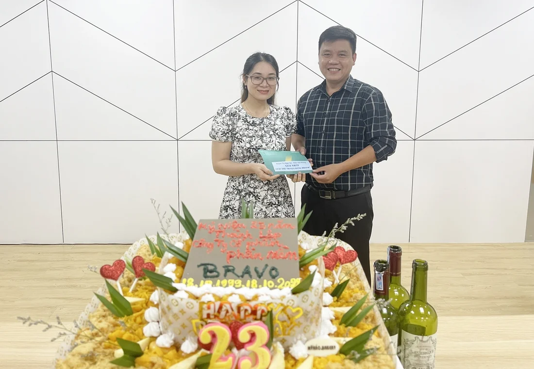 Ban lãnh đạo cùng nhau thổi nến và cắt bánh mừng BRAVO bước sang tuổi mới