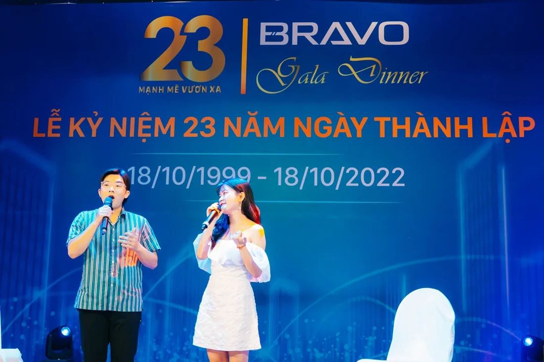 Tối ngày 15/10, đêm Gala kỷ niệm 23 năm thành lập công ty đã thật sự để lại dấu ấn và nhiều kỷ niệm khó quên cho tất cả các thành viên BRAVO HCM. Mở đầu chương trình, anh Tôn Minh Thiên – Trưởng VPĐD BRAVO HCM đã có những lời chia sẻ và tâm sự đầy xúc động về hành trình phát triển của công ty. Anh cũng bày tỏ lời cảm ơn sâu sắc nhất đến những đồng nghiệp đã luôn kề vai sát cánh, cùng làm nên những thành tích tự hào, đưa BRAVO ngày càng vươn cao, vươn xa. Cũng trong lời khai mạc, anh Tôn Minh Thiên đã trân trọng cảm ơn sự hợp tác, giúp đỡ nhiệt tình của các bạn đối tác cũng như sự tin tưởng của Quý Khách hàng suốt 23 năm qua, giúp BRAVO ngày càng đứng vững trên thị trường.