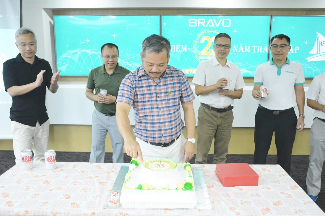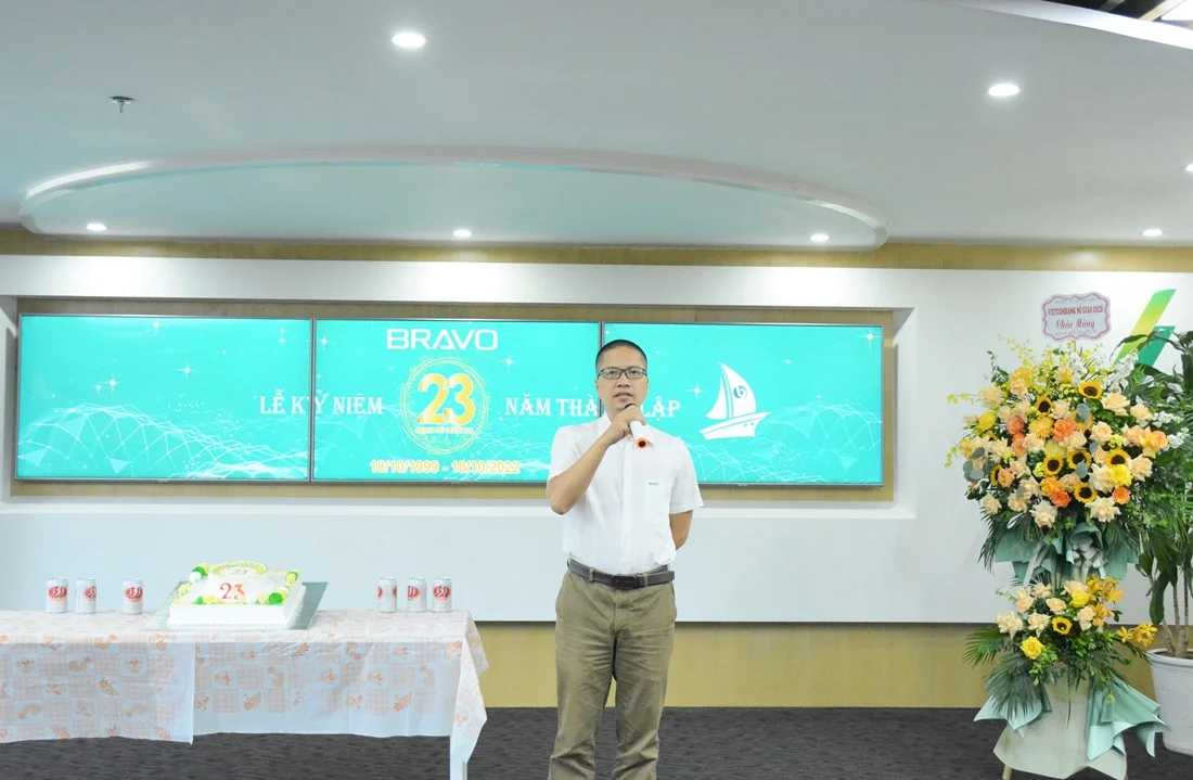 Tại BRAVO HCM, tất cả thành viên cũng quy tụ đông đủ để tham dự buổi lễ kỷ niệm 23 năm thành lập công ty được tổ chức trang trọng và đầm ấm tại sảnh văn phòng. Đại diện ban lãnh đạo, đã lên phát biểu tri ân những nỗ lực của CBNV trong suốt những năm qua và chúc mừng BRAVO bước sang tuổi mới cùng nhiều thành công mới.