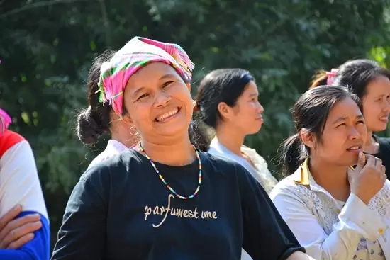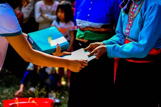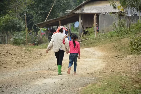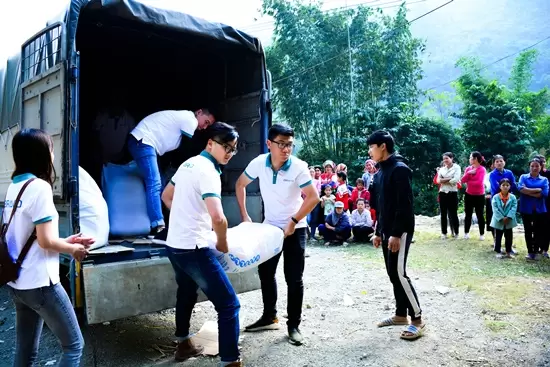 Sau hơn 3 giờ di chuyển, vượt qua quãng đường dài cùng 60km đường đèo dốc hiểm trở, quanh co, đoàn đã tới được xóm Nhạp, xã Đồng Chum, huyện Đà Bắc, tỉnh Hòa Bình. Ngay khi vừa đặt chân đến nơi đây, đoàn đã được chào đón bởi những nụ cười rất thân thiện, cái bắt tay niềm nở của bà con cùng nét hồn nhiên tươi cười của các em nhỏ nhiệt tình ra đón… Những khoảnh khắc bình dị đó khiến ai ai cũng cảm thấy ấm lòng, hạnh phúc, giúp xua tan mọi cảm giác mệt mỏi, dù rằng vừa vượt quãng đường xa tới đây.