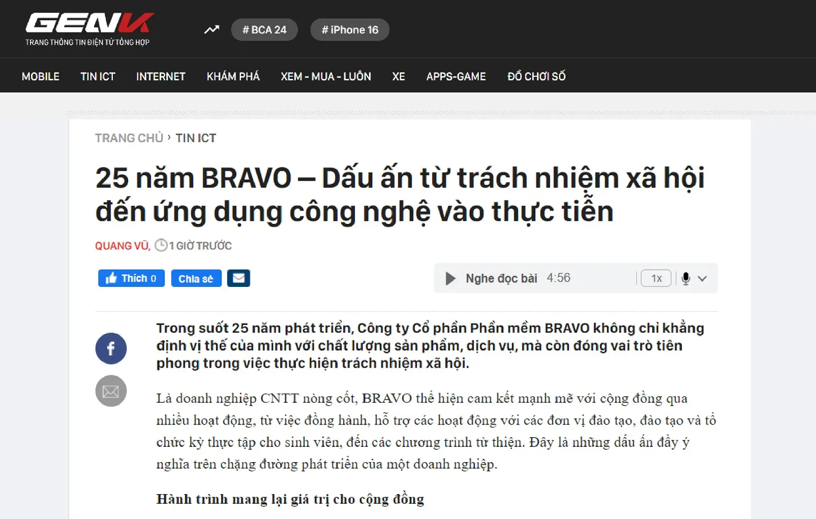 Bài viết được đăng tải trên Báo điện tử GenK, chuyên mục Tin ICT (ngày 04/10/2024)