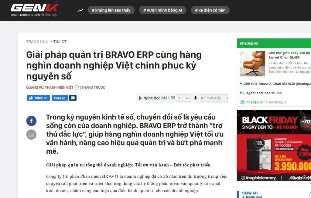 Trong kỷ nguyên kinh tế số, chuyển đổi số là yêu cầu sống còn của doanh nghiệp. BRAVO ERP trở thành “trợ thủ đắc lực”, giúp hàng nghìn doanh nghiệp Việt tối ưu vận hành, nâng cao hiệu quả quản trị và bứt phá mạnh mẽ.