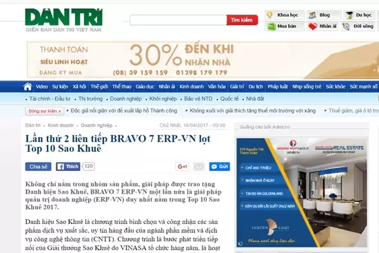 Thông tin được đăng tải trên bản tin Doanh nghiệp, Báo điện tử Dân trí, ngày 16/04/2017