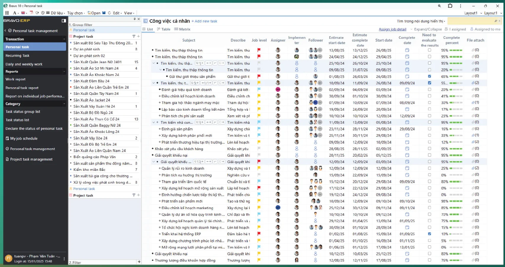 Work Management by Department: Individual work list report; Personal review; Track resource allocation.