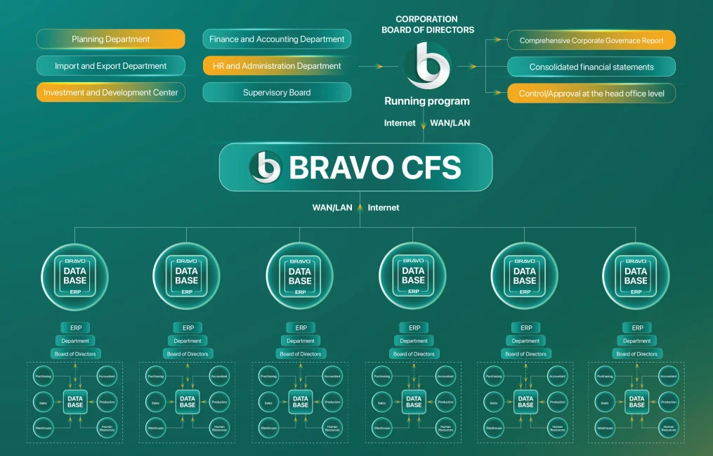 The BRAVO Consolidation Solution (CFS) is a comprehensive overview of the financial situation and business operations of the corporation/group (including the parent company and its subsidiaries, joint ventures, and affiliates within the shared ecosystem).