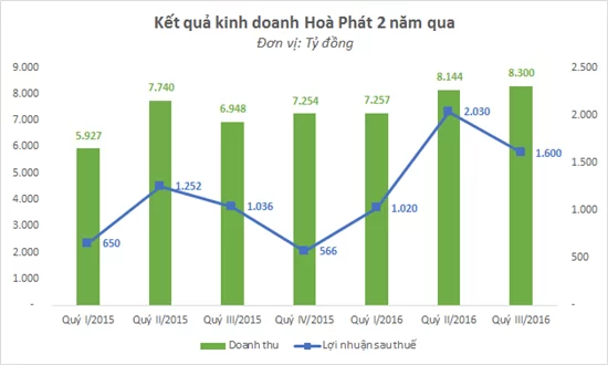 Tập đoàn Hoà Phát vừa công bố kết quả kinh doanh quý 3 với doanh thu 8.300 tỷ đồng và lợi nhuận sau thuế 1.600 tỷ đồng.