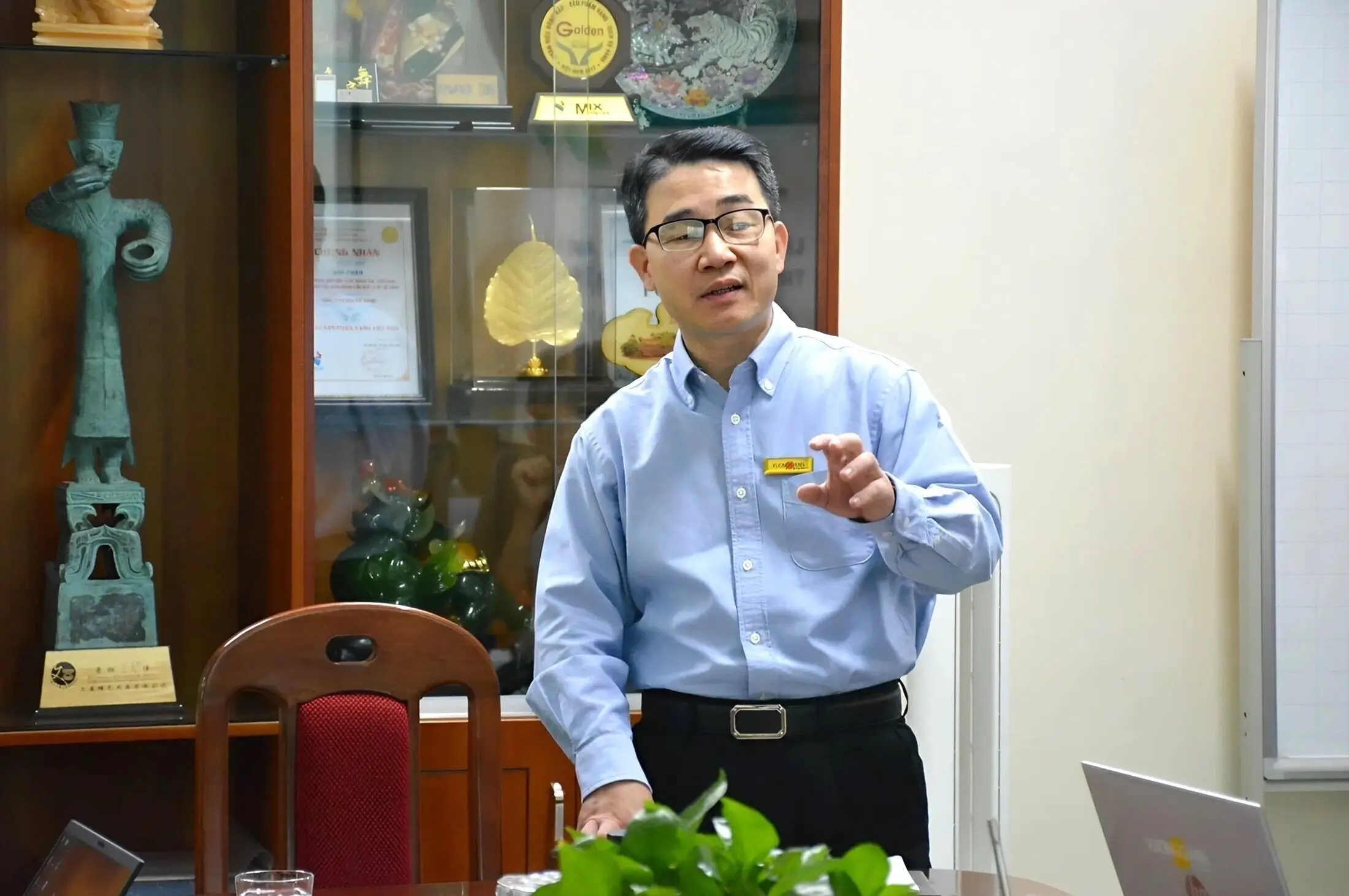 Ảnh: Ông Trần Xuân Nam, GĐ Nhà máy giấy Xương Giang chia sẻ sự vui mừng khi nhà máy triển khai áp dụng thành công hệ thống ERP