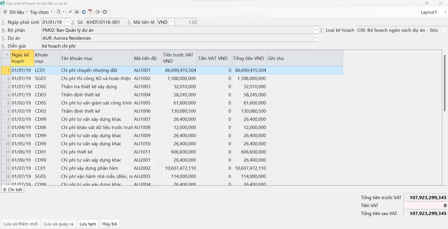 - Dữ liệu cập nhật tức thời, chi tiết theo từng dự án – hạng mục của dự án, hỗ trợ cho việc kiểm soát và giải quyết nhanh chóng các phát sinh liên quan tới dự án, nhà thầu.