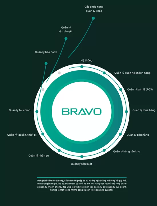 Việc có thêm những tính năng mở rộng bên cạnh những phân hệ quản trị chính nhằm đáp ứng tốt nhất nhu cầu ngày càng cao của khách hàng, giúp phần mềm BRAVO đã đang và sẽ tiếp tục là chìa khóa quản trị doanh nghiệp cho khách hàng.