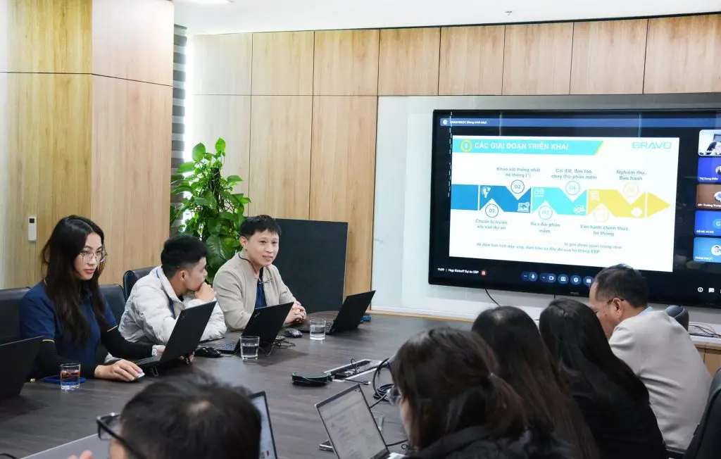 Trong khuôn khổ buổi Kick-off, hai bên đã trao đổi thẳng thắn và chi tiết về phạm vi triển khai, phương pháp thực hiện cũng như những vấn đề có thể phát sinh trong quá trình triển khai, qua đó thống nhất phương án phối hợp linh hoạt và hiệu quả. Đại diện BRAVO đã trình bày rõ lộ trình tổng thể của dự án, kế hoạch thời gian cho từng giai đoạn triển khai, đồng thời làm rõ các yêu cầu về dữ liệu, nhân sự tham gia, công tác phối hợp giữa các phòng ban và công tác chuẩn bị nội bộ của Gỗ Minh Long. Những nội dung này được xem là nền tảng quan trọng nhằm đảm bảo dự án được triển khai đúng tiến độ, kiểm soát tốt rủi ro và đạt chất lượng theo mục tiêu đề ra.