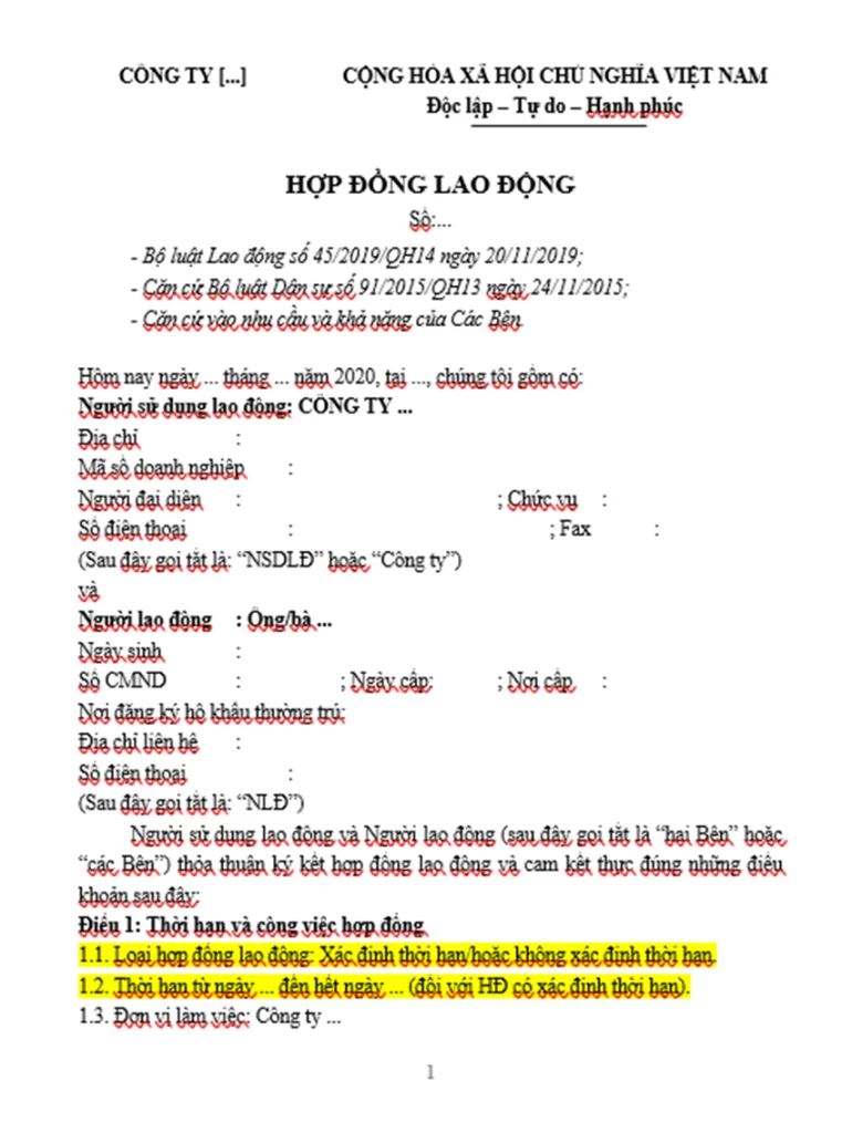 3. Mẫu hợp đồng lao động chuẩn dành cho doanh nghiệp