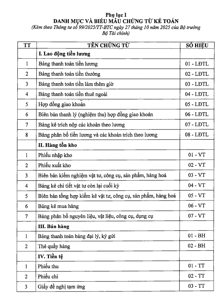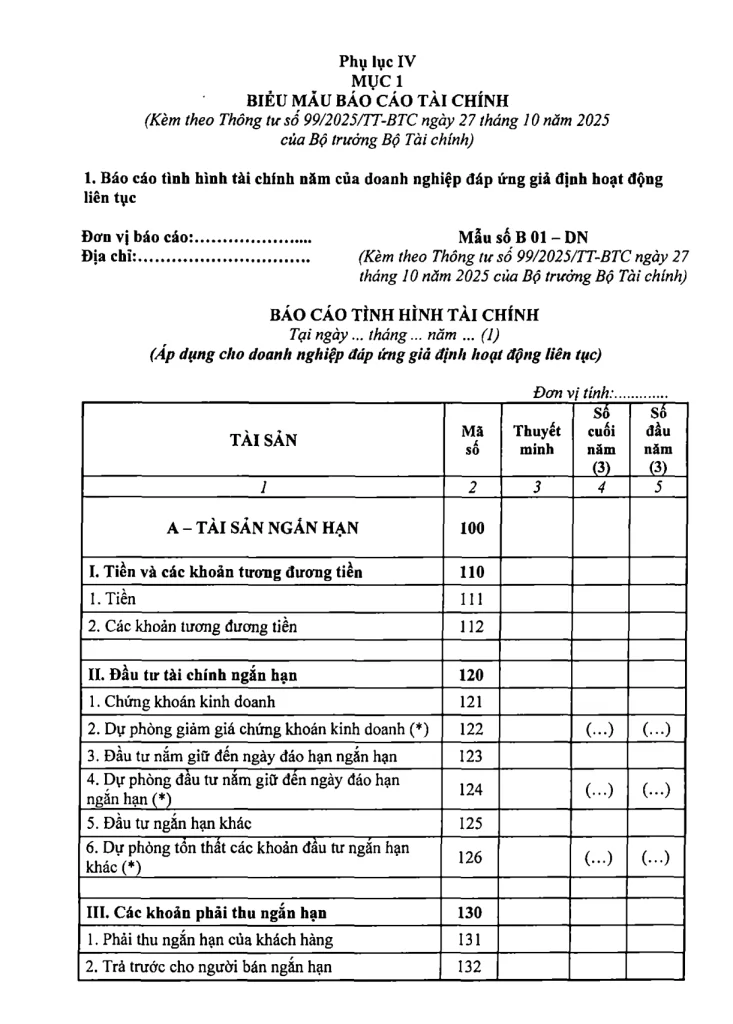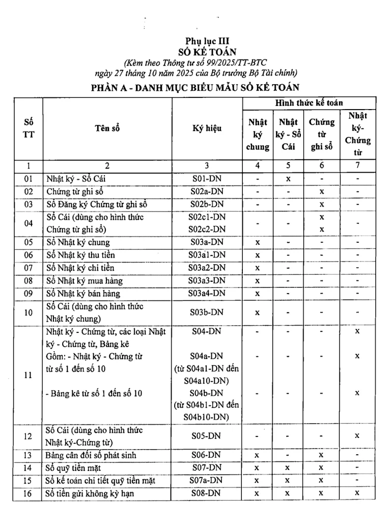 Thông tư 99/2025/TT-BTC có sự điều chỉnh đối với các mẫu biểu quy định trong phụ lục đính kèm, cụ thể: