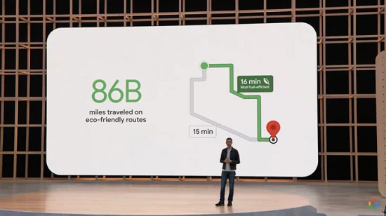 Nhờ vào những tiến bộ trong thị giác máy tính và AI đã cho phép Google hợp nhất hàng tỷ hình ảnh từ Chế độ xem phố và trên không, từ đó có thể tạo ra một mô hình kỹ thuật số trực quan, phong phú. Với chế độ xem trực quan mới này, bạn sẽ có thể trải nghiệm cận cảnh khu vực lân cận, địa danh, nhà hàng hoặc địa điểm nổi tiếng, và thậm chí có cảm giác như bạn đang thực sự ở tại đó. Song song đó, Google cũng công bố cải tiến về khả năng dẫn đường thân thiện hơn với môi trường, khi giúp tìm kiếm tuyến đường phù hợp và ngắn nhất để bắt đầu hành trình với mức nhiên liệu tiêu thụ thấp nhất.