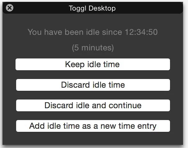 Đặc biệt, ứng dụng Toggl còn có chức năng "phát hiện nhàn rỗi". Nó sẽ gửi thông báo về thời gian nhân viên đã rời khỏi máy tính và bạn có thể quyết định xóa hoặc lưu lại.