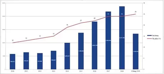 Kết quả tăng trưởng tốt cả tiêu thụ trong nước lẫn xuất khẩu, Hòa Phát giữ vững ở vị thế số 1 trong ngành thép Việt Nam với thị phần 6 tháng khoảng 25% (Nguồn: hoaphat.com.vn)